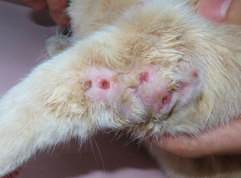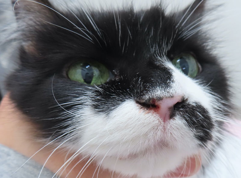 犬の場合は、偽妊娠と呼ばれる期間があり、この期間中さも妊娠したかのように乳腺が張り、乳汁が分泌されます。この乳腺への刺激が乳腺腫瘍の発生に関わっています。犬の乳腺腫瘍は、良性と悪性が半々と言われています。猫の乳腺腫瘍は、9割が悪性です。悪性の場合は早晩転移を起こし死に至ります。